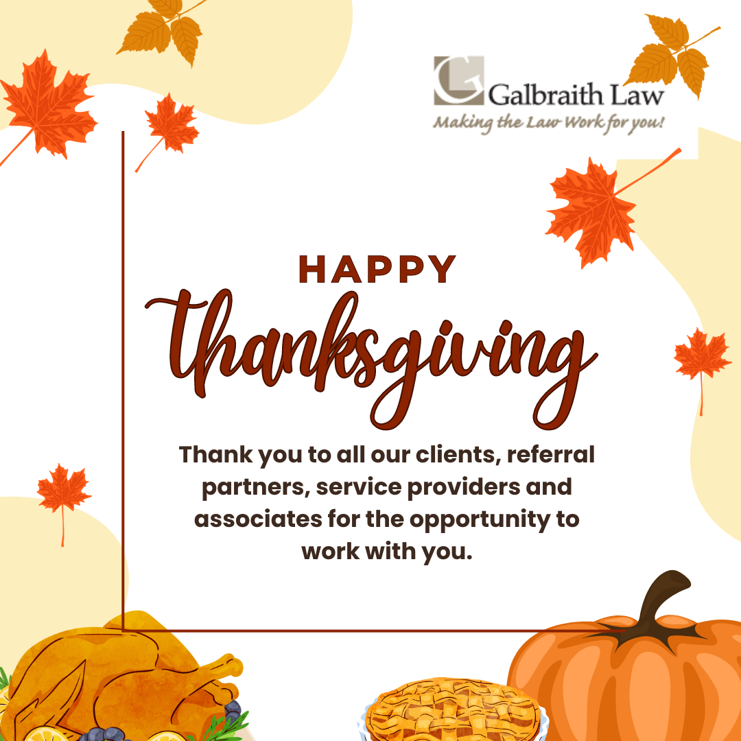 Please be advised that our office is closed on October 14, 2024 for the Thanksgiving Holiday.